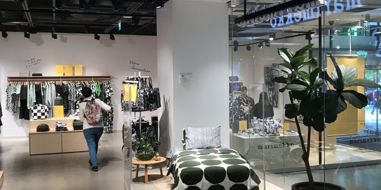 Marimekko er alltid høyt oppe på lista for alle sy-og stoffinteresserte som reiser til Finland, og det var de selvsagt også for meg. Det er utsalg flere steder i byen, og såvidt jeg kunne se, hadde de metervare i alle. Den virkelig store opplevelsen må en likevel litt ut av sentrum for å få. Vi kom i egen bil, så med litt GPS-hjelp var det enkelt å finne fram til Kirvesmiehenkatu 7 – der fabrikkutsalget lå… Det var en overveldende opplevelse, og et godt råd er å stå ganske stille et lite minutt før en begynner å rusle rundt. Det er så mye farger, klær og stoffer å ta inn, at en nesten blir svimmel. Jeg hadde kommet for å handle metervare, og klarte nesten å holde meg til det – men må innrømme at det havnet sokker, servietter, en ny tekopp og en eske med blyanter (!) i tillegg til de fargerike stoffene i handlevogna før jeg kom meg ut. I Norge er det Ellos som selger Marimekko på nettet, og deres meterpriser ligger i overkant av 400 kroner. På fabrikkutsalget kostet de fleste stoffene fra 20-27 euro pr. meter. Noen muligheter for å gjøre et kupp i restekassene, og akkurat den dagen vi var på besøk var det salg på noen av stoffene.