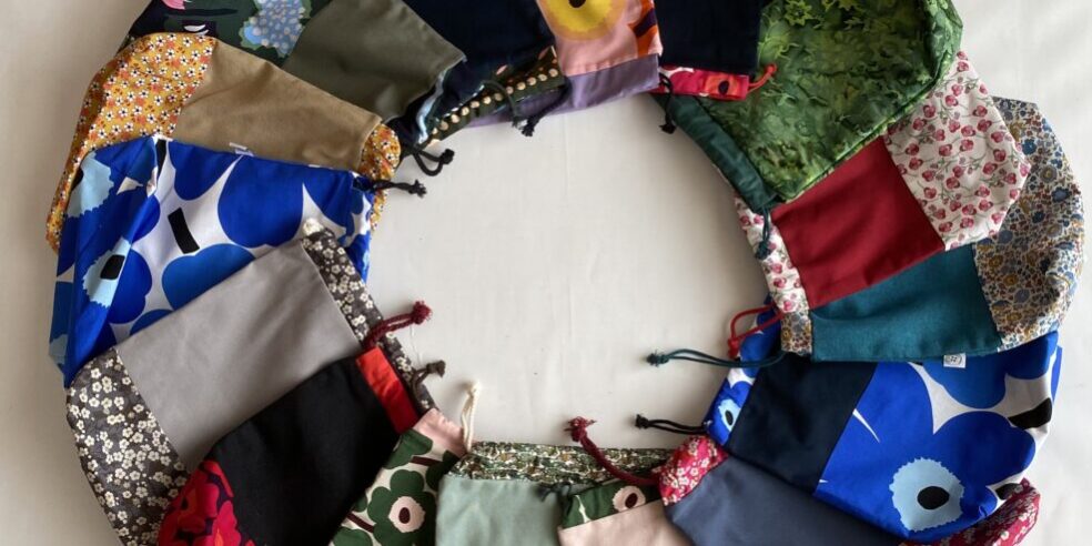Sydd i canvas, pyntet med stoff fra Marimekko